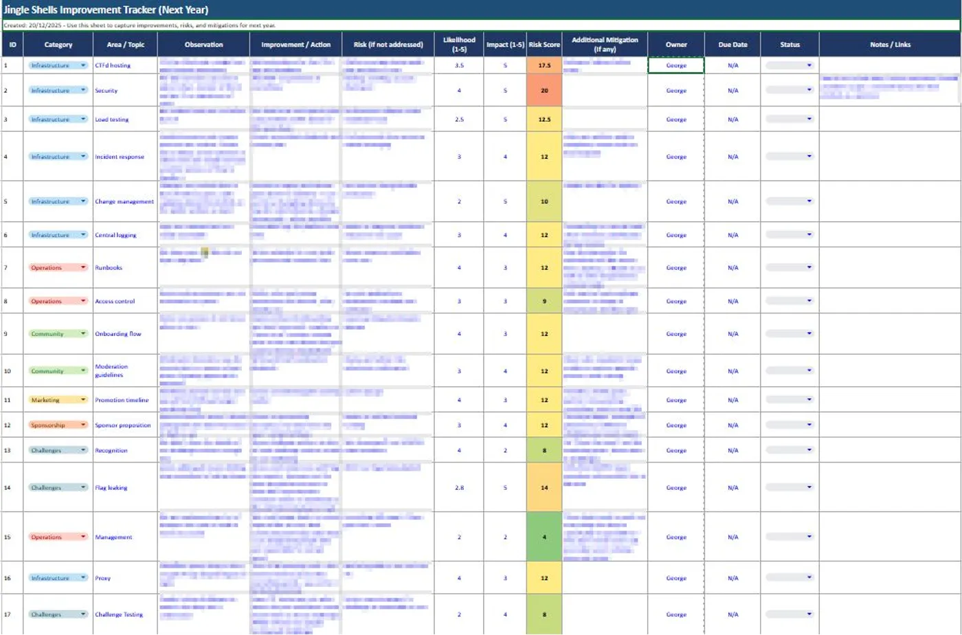 🔐 Committee-Driven Design: Aiming for 50+ club committee members shaping challenges, testing infrastructure, and running live scoring